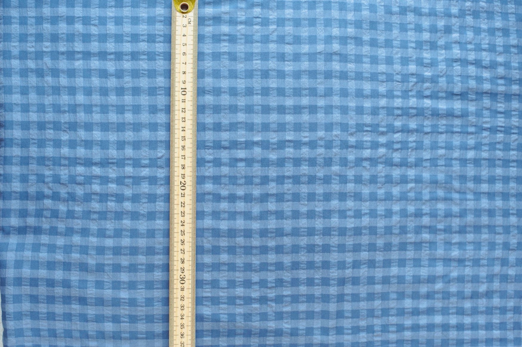 This timeless gingham fabric combines deep and light blue yarn-dyed checks with the airy texture of seersucker. The gently puckered weave creates natural breathability and subtle dimension, giving the fabric its signature lightweight feel. OEKO-TEX® Certified.